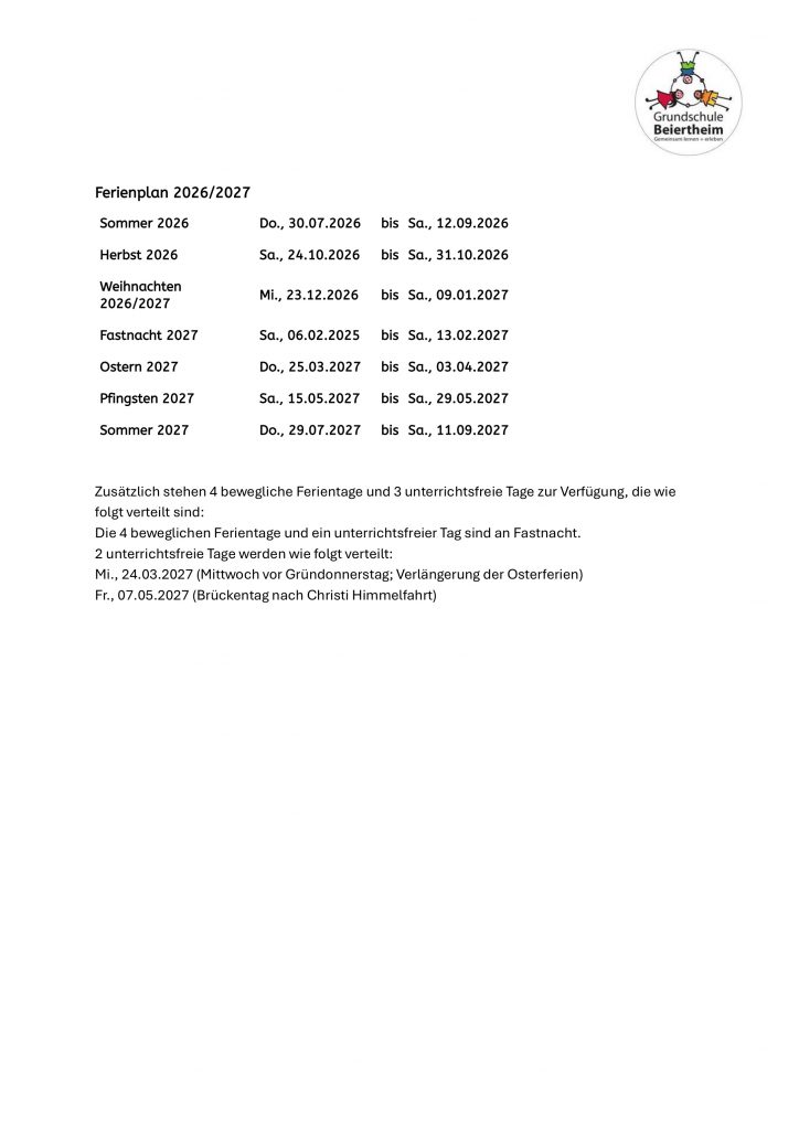 • Ferienplan 2026/2027 13. März 2026
