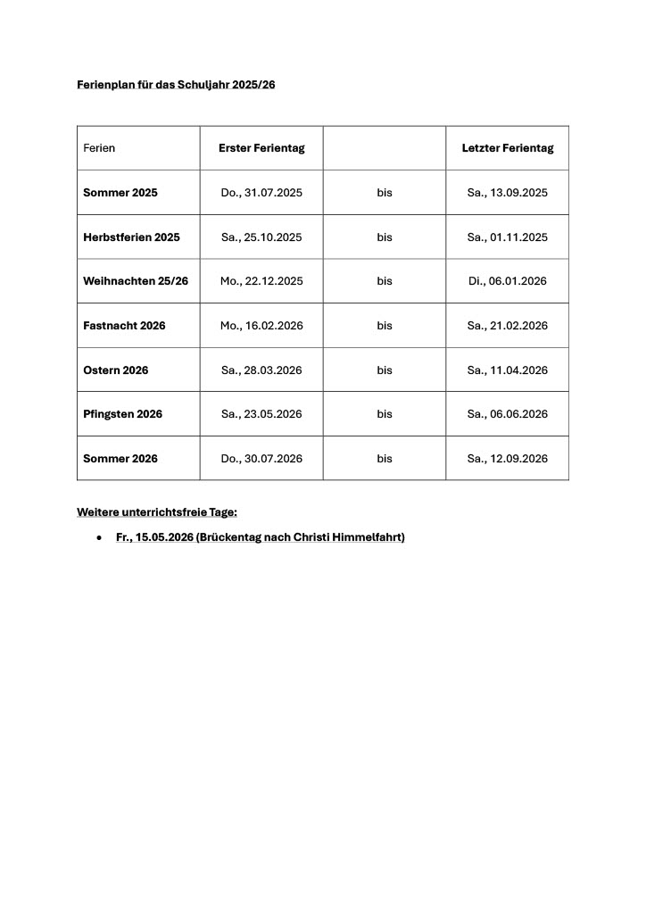 Ferienplan Schuljahr 2025/26